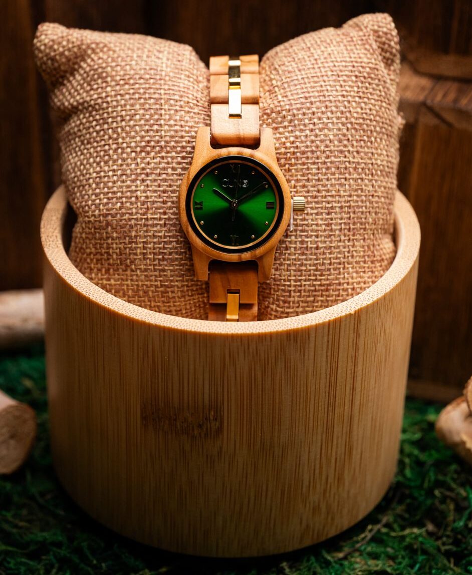 Gehäuse: Durchmesser 27 mm – gefertigt aus edlem Olivenholz