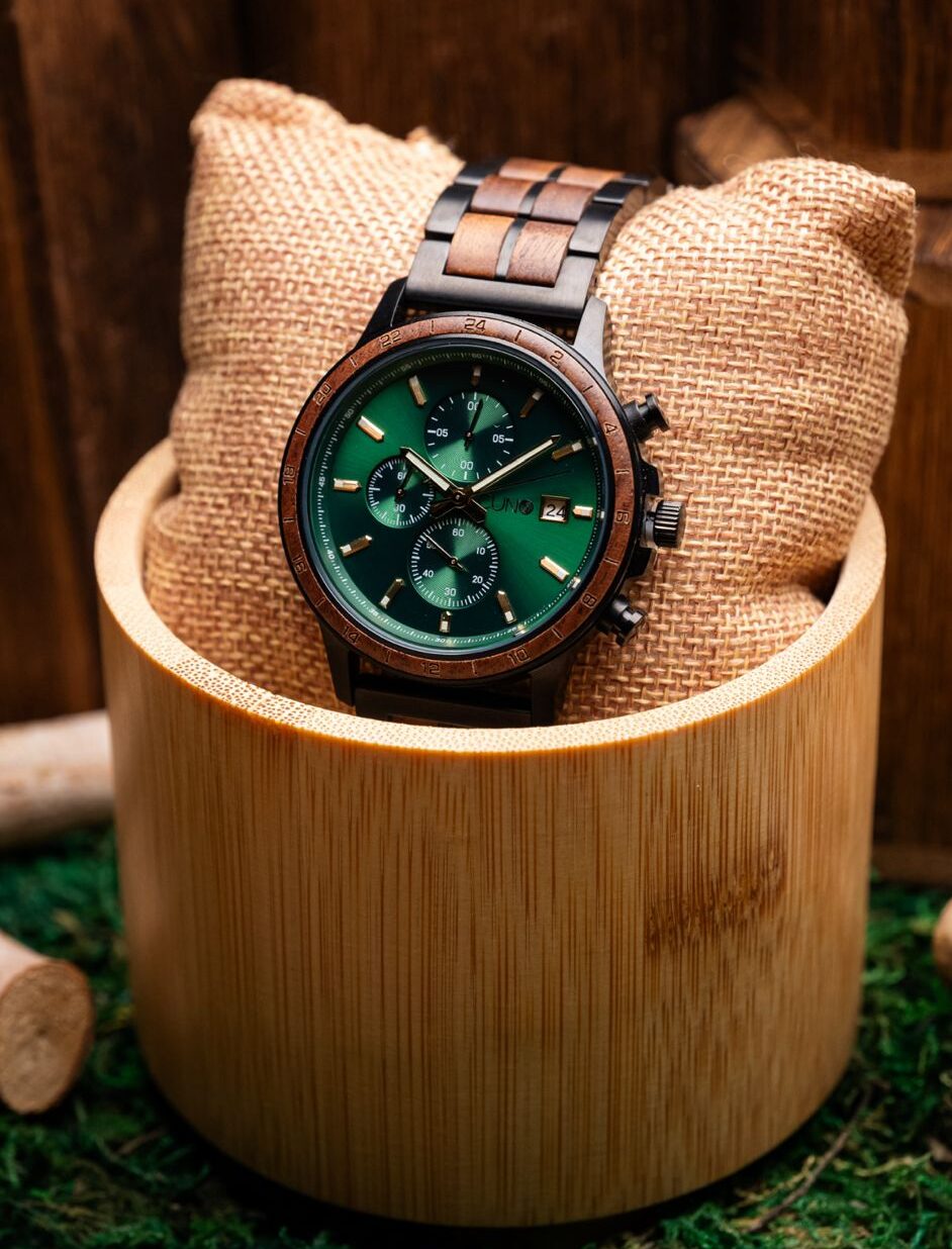 Die einzigartigen Maserungen von Holz und die faszinierenden Strukturen von Stein machen jedes unserer Uhren- und Schmuckstücke zu einem echten Unikat, das die Schönheit der Natur stilvoll einfängt.